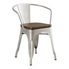 Lancaster Table & Seating Alloy Silver Indoor Arm Chair with Natural Wood Seat