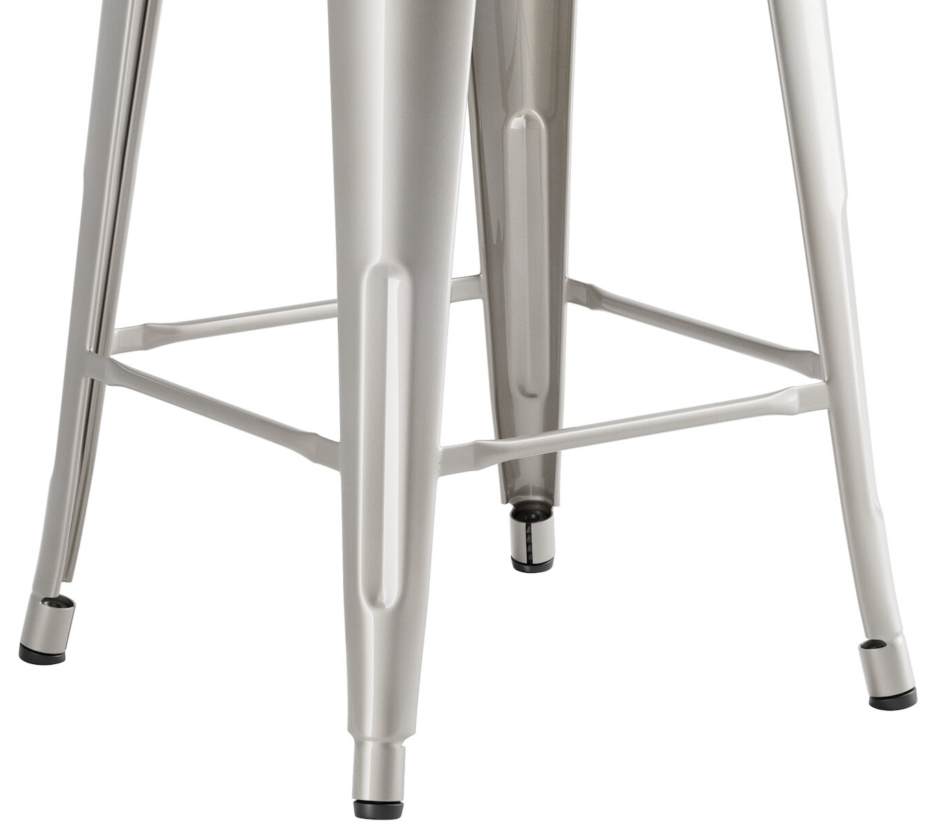 Ready to withstand daily indoor use, this stool is constructed of durable steel. It also has a clear coat for a shiny, industrial look. The frame is reinforced with additional under-seat cross bracing to provide strength and stability without adding extra bulk or weight to this sleek design.