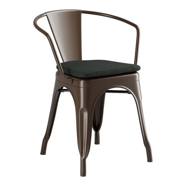 This industrial chair boasts a 400 lb. weight capacity. To ensure that your customers are free to enjoy your signature drinks, appetizers, entrees, and desserts, it features a supportive back and comfortable seat with rounded corners for a sleek, minimalist look. Rounded arm rests are also included for added support.