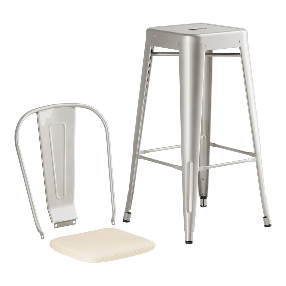 This stool is made of durable steel to withstand years of use. The sleek clear coat adds a stylish touch to any setting and is sure to be a contemporary design choice that guests love. Comfortable and stylish, this strong yet lightweight stool is an excellent choice for your indoor dining area. To save you money on shipping costs, this barstool ships with the backrest and cushion detached from the stool. All required assembly hardware is included.