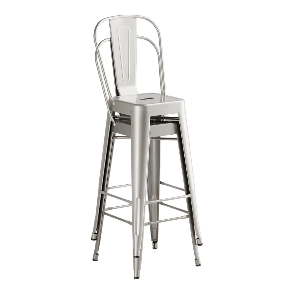 Boasting a 400 lb. weight capacity, this industrial barstool includes a footrest to reduce pressure on your customers' legs and lower backs. To ensure that your customers are free to enjoy your signature drinks, appetizers, entrees, and desserts, it features a supportive back and comfortable seat with a raised, rounded lip for a sleek, minimalist look.