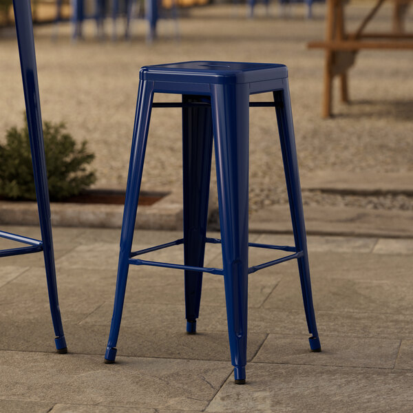 Take your modern restaurant, cafe, or bistro to the next level with this Lancaster Table & Seating Alloy sapphire outdoor backless barstool!