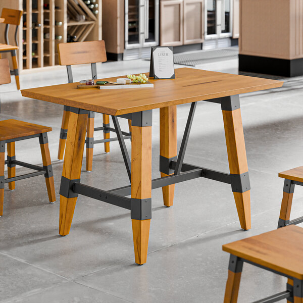 Lancaster Table & Seating Industrial Honey Maple Finish Standard Height Trestle Table Base for 30" x 48" Table Tops