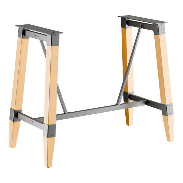 Lancaster Table & Seating Industrial Honey Maple Finish Bar Height Trestle Table Base for 30" x 60" Table Tops