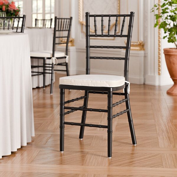 Lancaster Table & Seating Black Wood Chiavari Chair with Ivory Cushion
