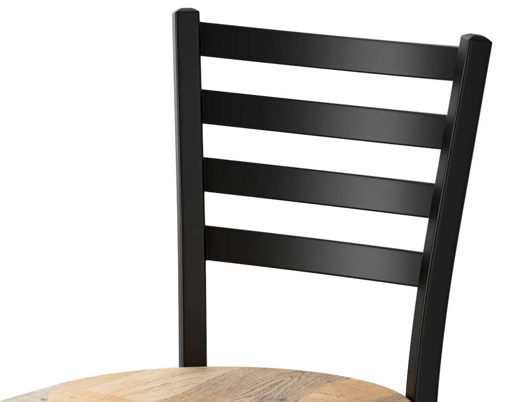 • Lancaster Table & Seating Black Finish Ladder Back Bar Stool with Driftwood Seat - Detached Seat
