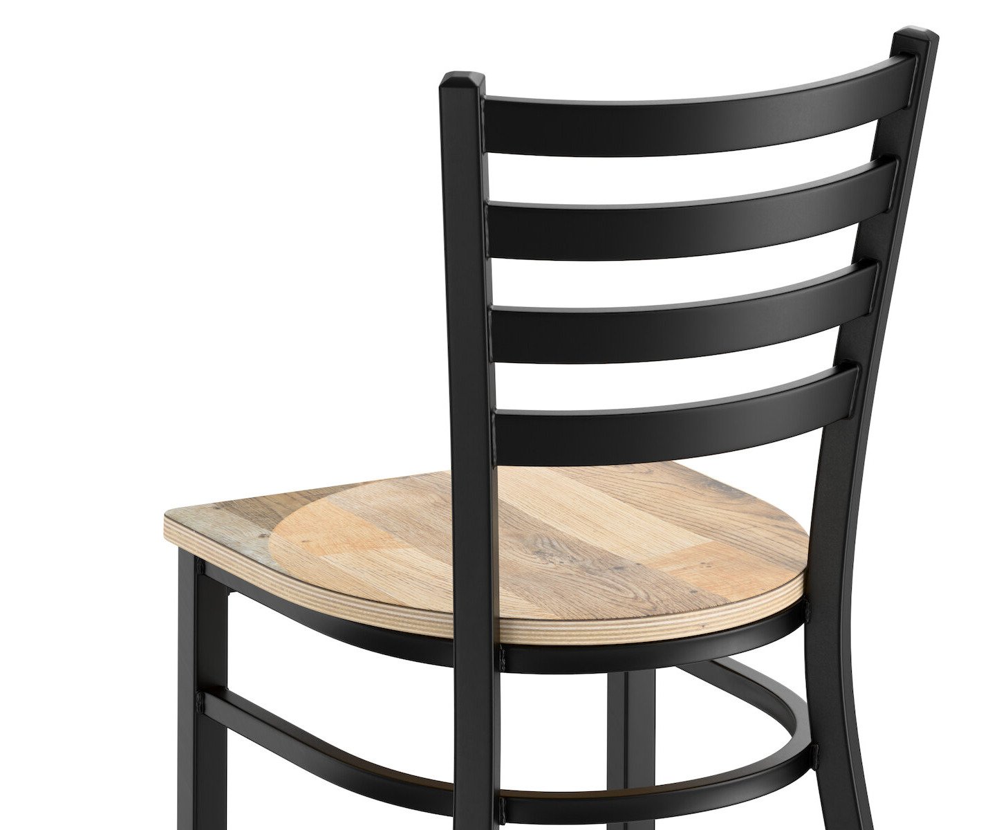 This chair's sleek wood seat combines with its contemporary ladder back steel frame to instill a modern look in any location. Plus, since this chair's back is contoured for a customer's back, it will provide comfort while maintaining a distinct appearance.