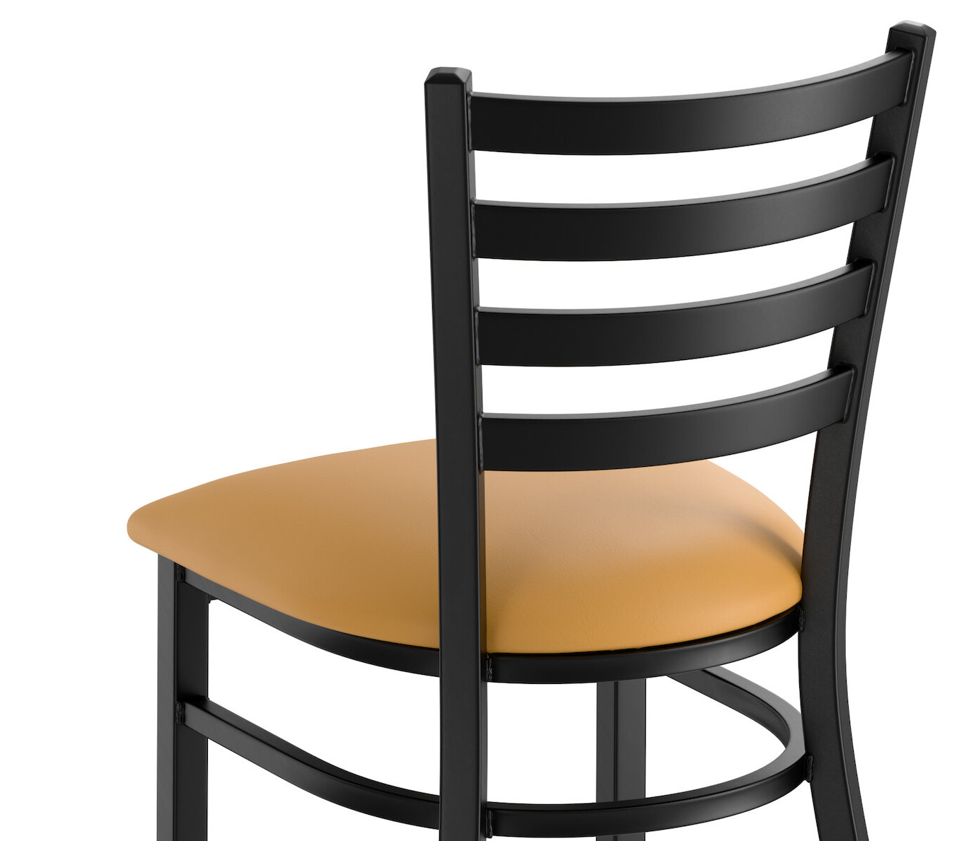 Lancaster Table & Seating Black Finish Ladder Back Chair with 2 1/2" Light Brown Vinyl Padded Seat - Detached Seat