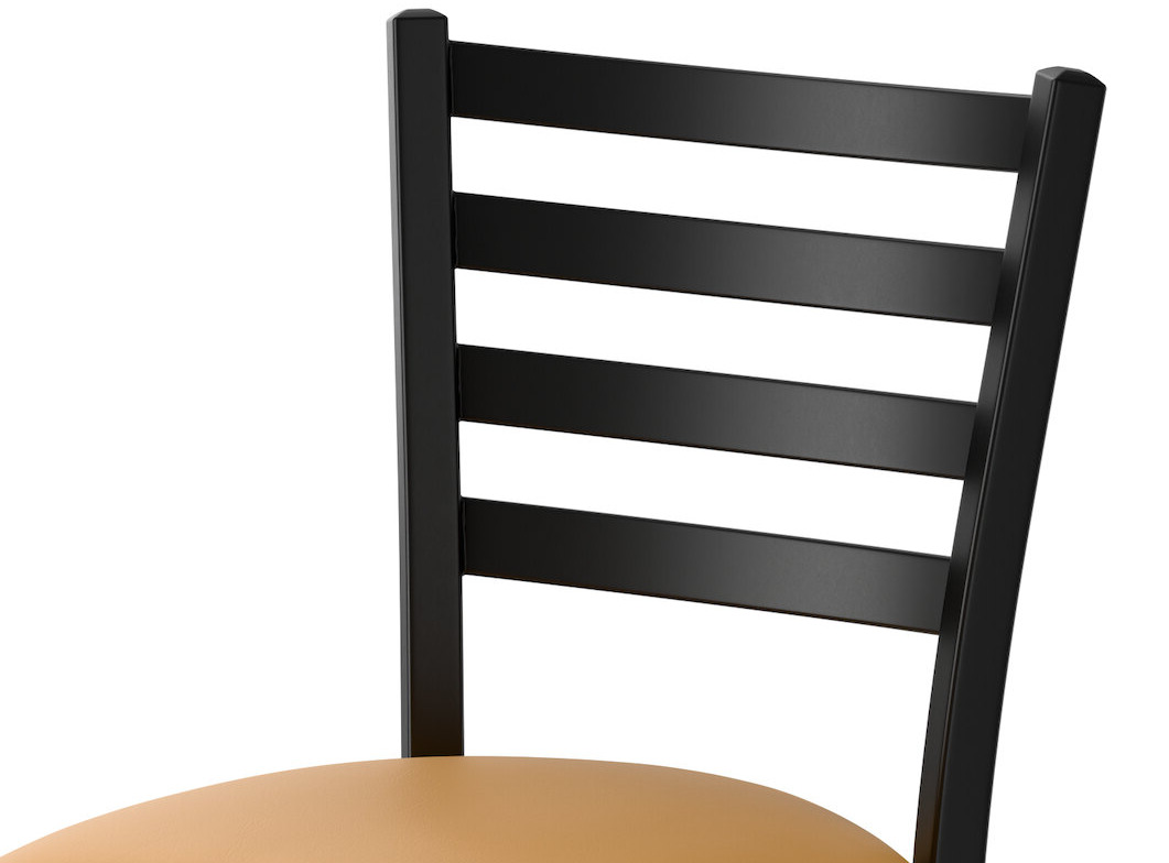 Seat your guests in comfort and style with this Lancaster Table & Seating black finish ladder back chair with 2 1/2" light brown vinyl padded seat.