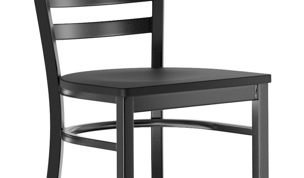 This bar stool's sturdy wood seat with a sleek black finish combines with its contemporary ladder back steel frame to instill a modern look in any location. Plus, since this bar stool's back is contoured for a customer's back, it will provide comfort while maintaining a distinct appearance.