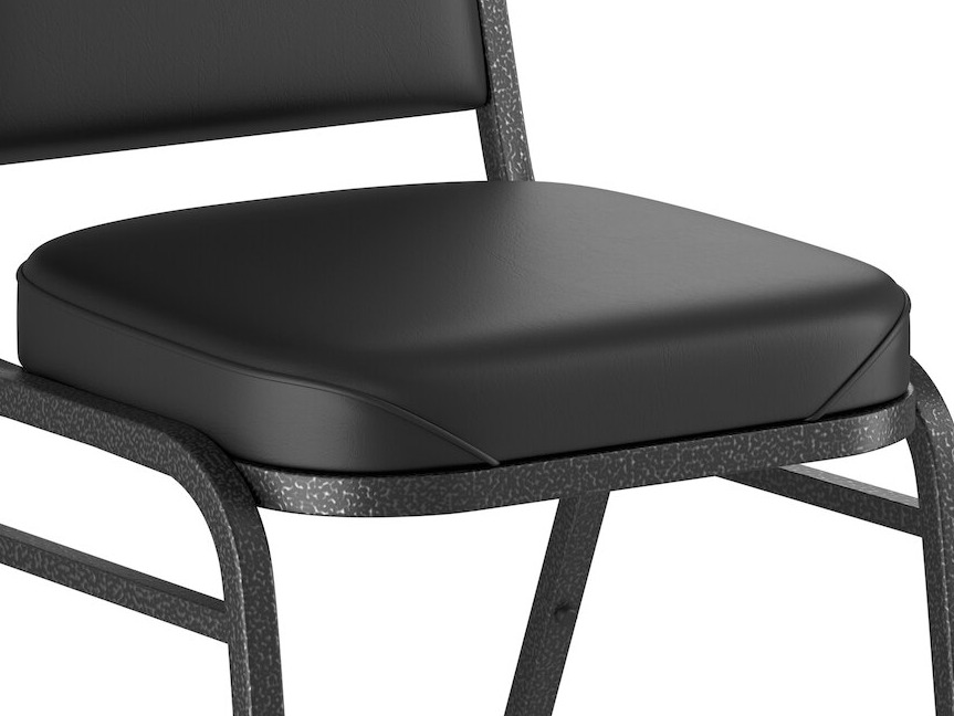With sleek black vinyl seats and an eye-catching silver vein frame to complement it, this chair will look great in any conference hall, auditorium, or waiting room.