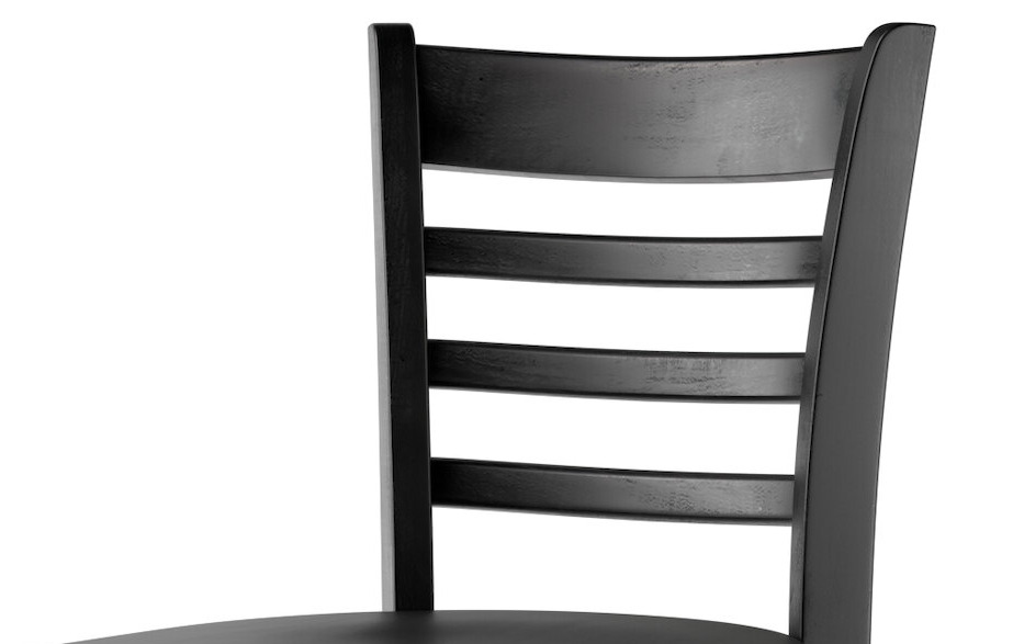 A great natural wood ladder back bar height chair with a stylish black seat. The chairs are well built and designed are great for bar height tables.