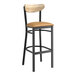 Lancaster Table & Seating Boomerang Black Finish Bar Stool with Light Brown Vinyl Seat and Driftwood Back