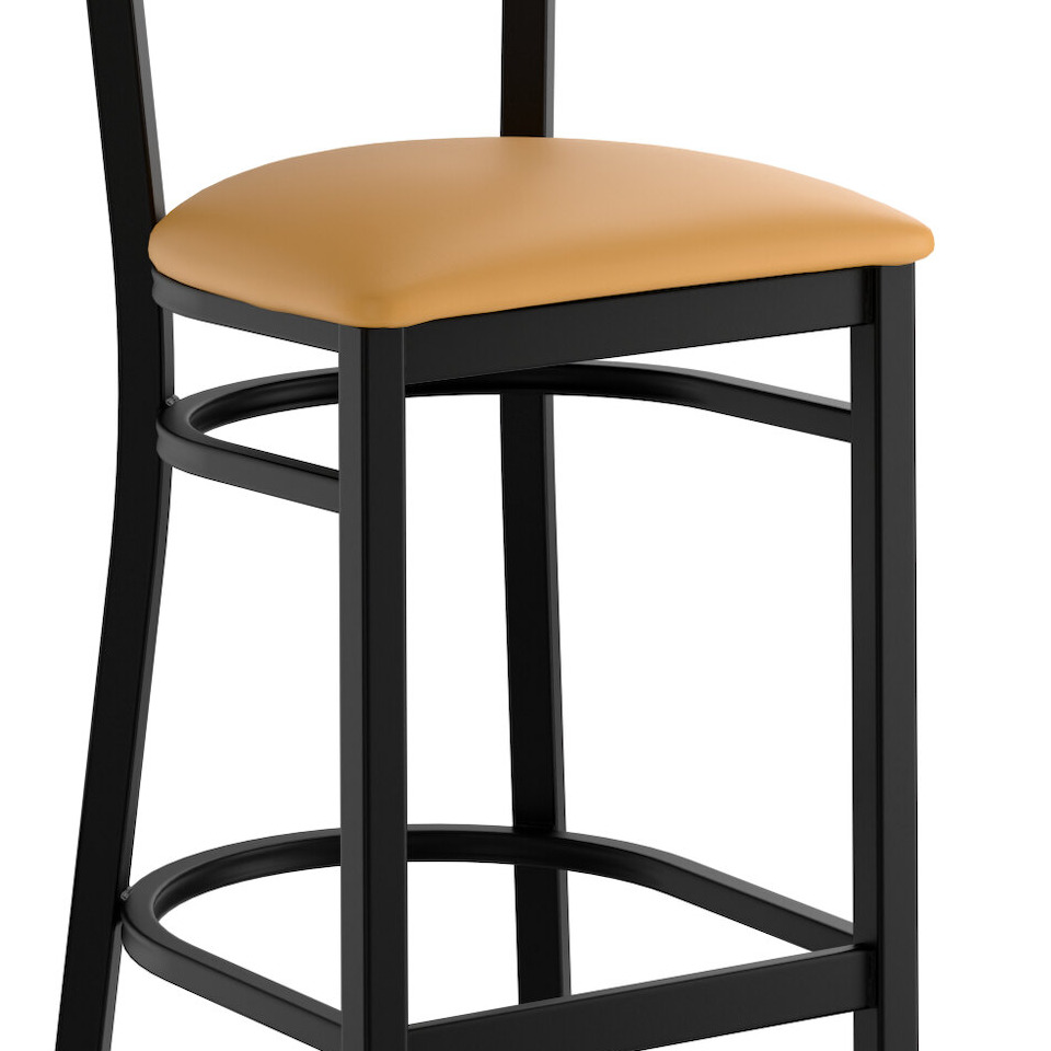 This bar stool's sturdy steel frame provides unmatched durability in your commercial dining room. It can hold up to 330 lb. of weight thanks to the steel frame and supports under the seat. Additionally, the black finish on this bar stool ensures longevity through everyday wear and tear, resisting stains, scratches, and smudges.