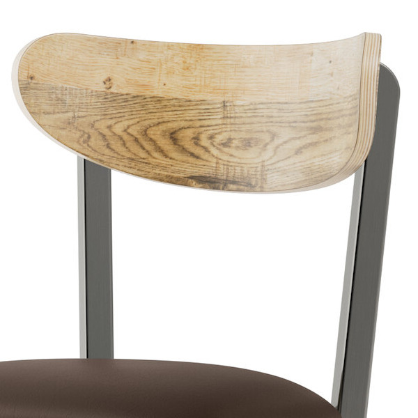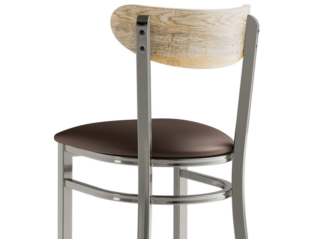 This bar stool's wooden Boomerang back and padded seat combine with its modern steel frame to instill a unique look in any location. Plus, since this bar stool's back is contoured for a customer's back, it will provide comfort while maintaining a distinct appearance.