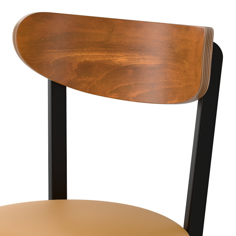 Lancaster Table & Seating Boomerang Black Finish Chair with Light Brown Vinyl Seat and Vintage Wood Back