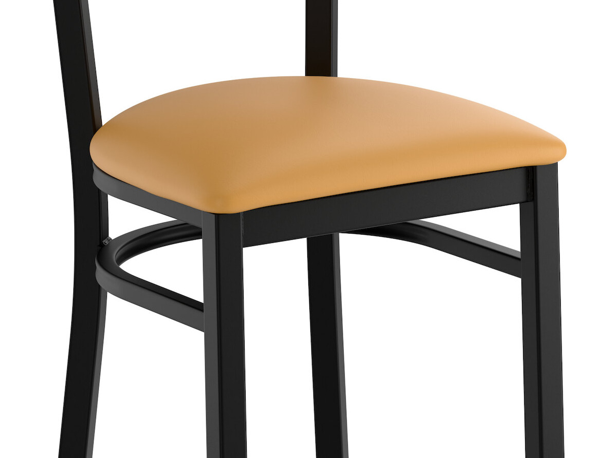 This chair's sturdy steel frame provides unmatched durability in your commercial dining room. It can hold up to 330 lb. of weight thanks to the steel frame and supports under the seat. Additionally, the black finish on this chair ensures longevity through everyday wear and tear, resisting stains, scratches, and smudges.
