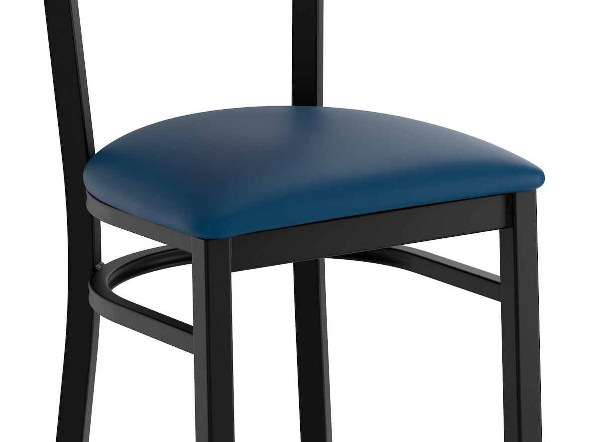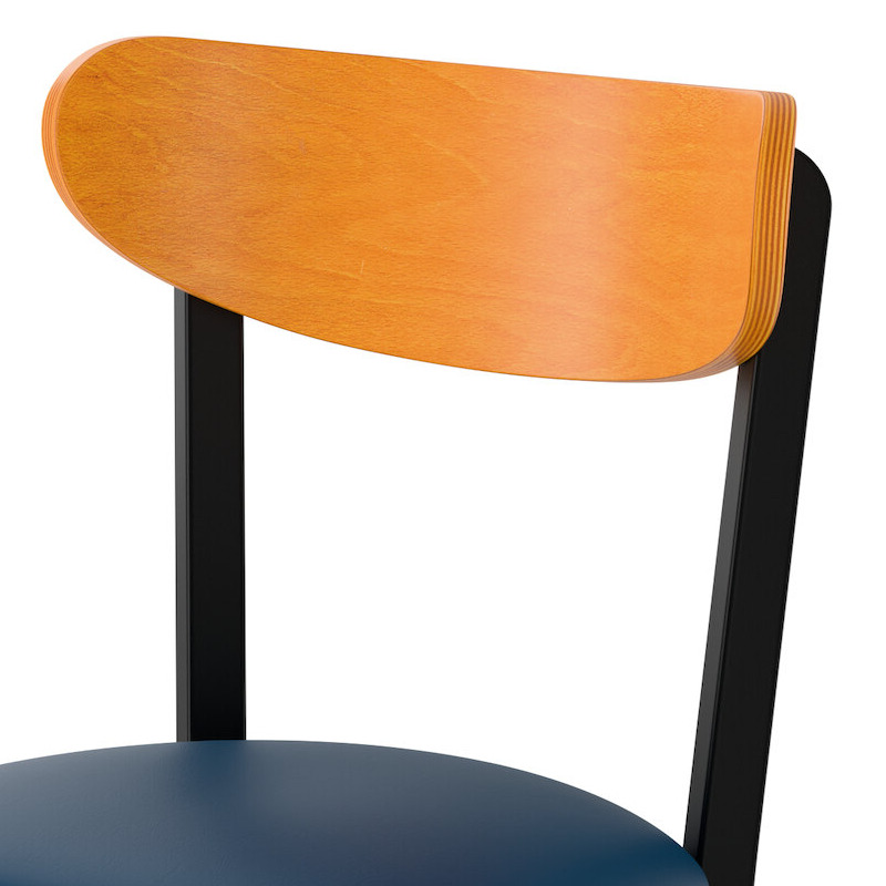 The back of the chair ( Boomerang) it quite comfortable and gives the chair a new modern, yet practical look. Affordable & sturdy. The padded cushion is comfortable, but be aware that after some time the screws do some loose and and the OSB like base doesn't allow for re-screwing/drilling. Our fix to this (as this was our second time purchasing this chairs) was to drill an anchor then insert the screw. (THIS IS ONLY our opinion of how to allow these chairs to last) Our first set of chairs at another location have been used for 6 years and still going strong without major wear and tear. Would buy a again
