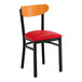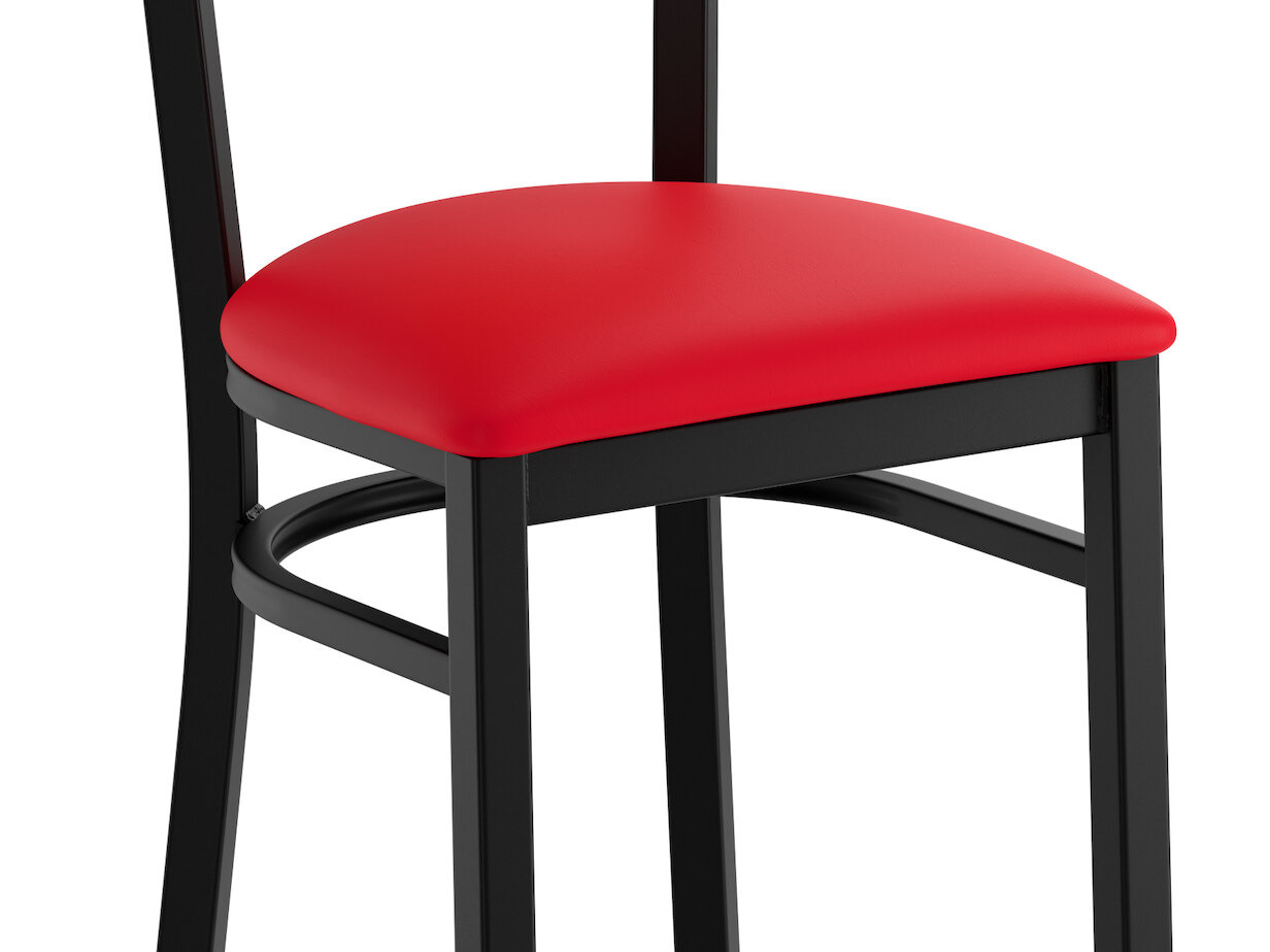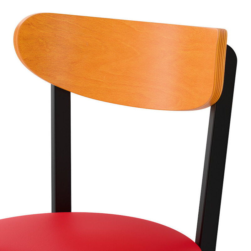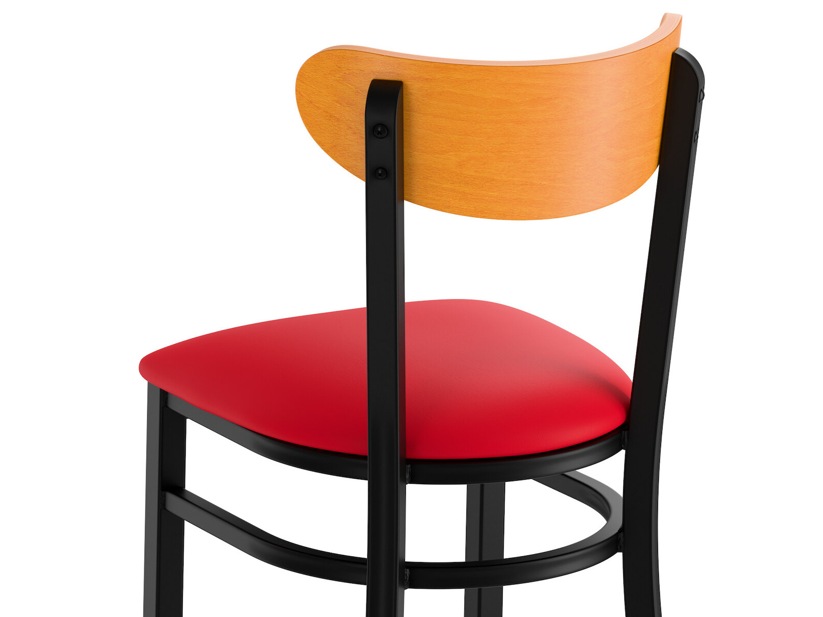 The back of the chair ( Boomerang) it quite comfortable and gives the chair a new modern, yet practical look. Affordable & sturdy. The padded cushion is comfortable, but be aware that after some time the screws do some loose and and the OSB like base doesn't allow for re-screwing/drilling. Our fix to this (as this was our second time purchasing this chairs) was to drill an anchor then insert the screw. (THIS IS ONLY our opinion of how to allow these chairs to last) Our first set of chairs at another location have been used for 6 years and still going strong without major wear and tear. Would buy a again