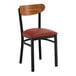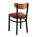 Lancaster Table & Seating Boomerang Black Finish Chair with Burgundy Vinyl Seat and Vintage Wood Back - Unassembled
