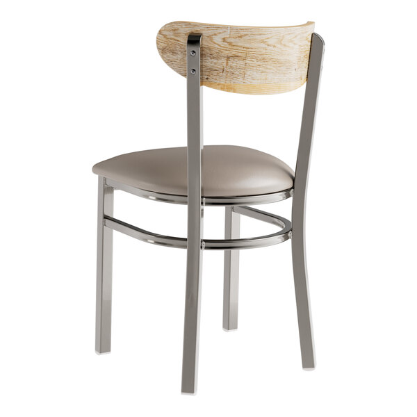 The back of the chair ( Boomerang) it quite comfortable and gives the chair a new modern, yet practical look. Affordable & sturdy. The padded cushion is comfortable, but be aware that after some time the screws do some loose and and the OSB like base doesn't allow for re-screwing/drilling. Our fix to this (as this was our second time purchasing this chairs) was to drill an anchor then insert the screw. (THIS IS ONLY our opinion of how to allow these chairs to last) Our first set of chairs at another location have been used for 6 years and still going strong without major wear and tear. Would buy a again