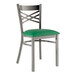 Lancaster Table & Seating Boomerang Clear Coat Finish Chair with Green Vinyl Seat and Cherry Wood Back