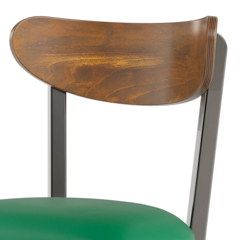 The back of the chair ( Boomerang) it quite comfortable and gives the chair a new modern, yet practical look. Affordable & sturdy. The padded cushion is comfortable, but be aware that after some time the screws do some loose and and the OSB like base doesn't allow for re-screwing/drilling. Our fix to this (as this was our second time purchasing this chairs) was to drill an anchor then insert the screw. (THIS IS ONLY our opinion of how to allow these chairs to last) Our first set of chairs at another location have been used for 6 years and still going strong without major wear and tear. Would buy a again