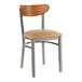 Lancaster Table & Seating Boomerang Clear Coat Finish Chair with Light Brown Vinyl Seat and Antique Walnut Wood Back