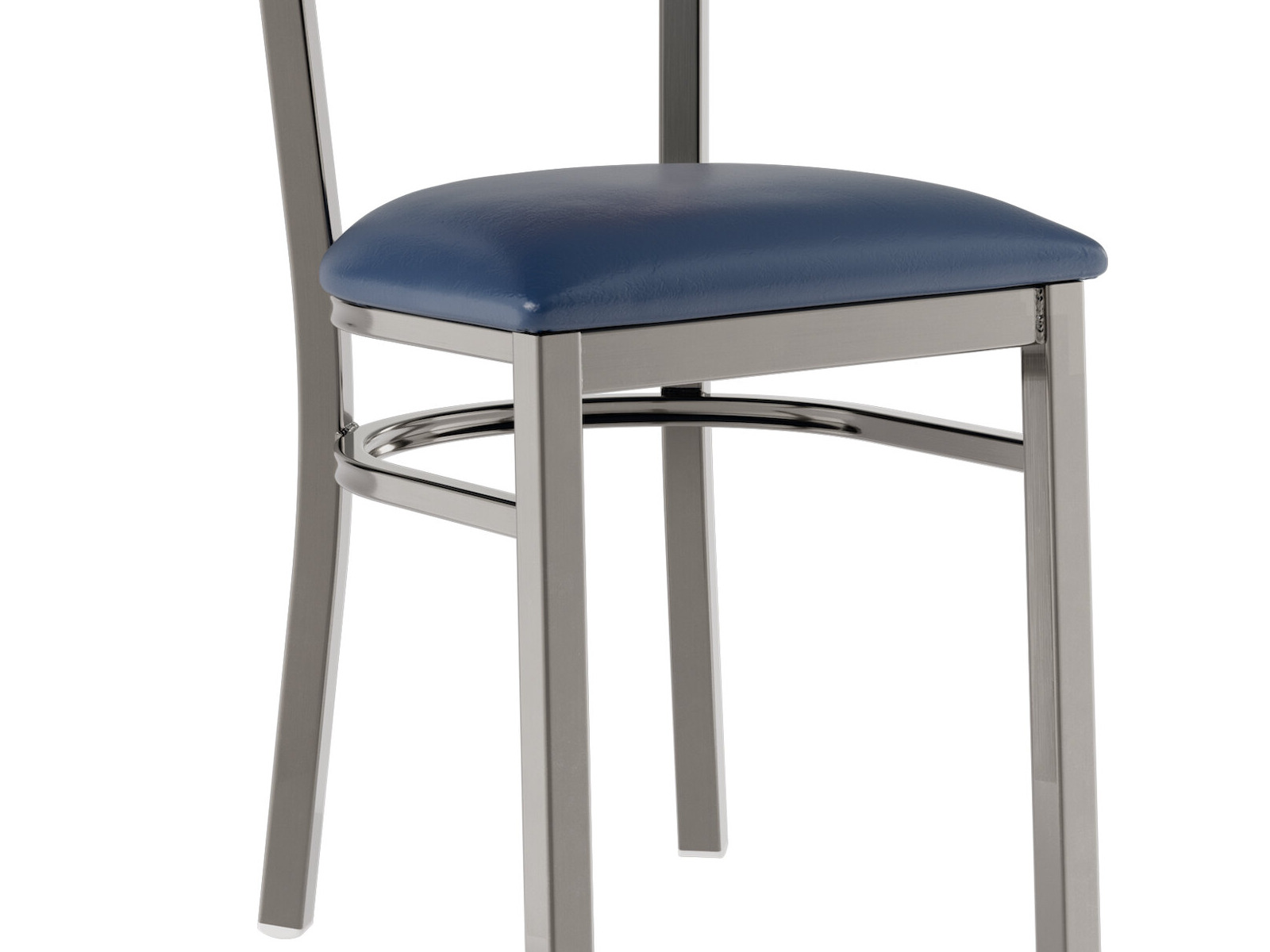 The back of the chair ( Boomerang) it quite comfortable and gives the chair a new modern, yet practical look. Affordable & sturdy. The padded cushion is comfortable, but be aware that after some time the screws do some loose and and the OSB like base doesn't allow for re-screwing/drilling. Our fix to this (as this was our second time purchasing this chairs) was to drill an anchor then insert the screw. (THIS IS ONLY our opinion of how to allow these chairs to last) Our first set of chairs at another location have been used for 6 years and still going strong without major wear and tear. Would buy a again