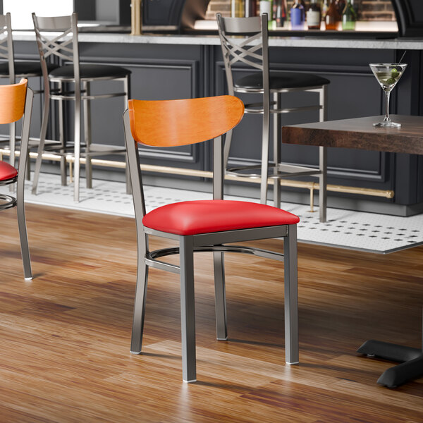 The back of the chair ( Boomerang) it quite comfortable and gives the chair a new modern, yet practical look. Affordable & sturdy. The padded cushion is comfortable, but be aware that after some time the screws do some loose and and the OSB like base doesn't allow for re-screwing/drilling. Our fix to this (as this was our second time purchasing this chairs) was to drill an anchor then insert the screw. (THIS IS ONLY our opinion of how to allow these chairs to last) Our first set of chairs at another location have been used for 6 years and still going strong without major wear and tear. Would buy a again