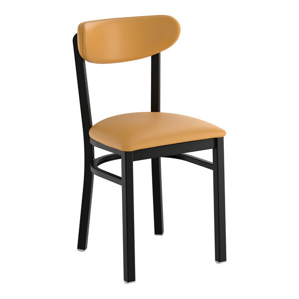 Seat your guests in comfort and style with this Lancaster Table & Seating Boomerang black finish chair with 2 1/2" light brown vinyl padded seat and back.