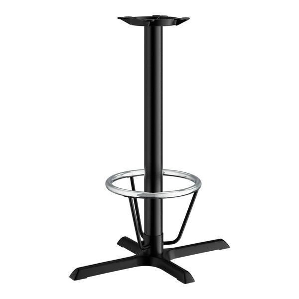 This cross-shaped table base makes it easy to add the compatible table top of your choosing. Round or square, light or dark - the options are endless for creating a sturdy bar height table! Whether you're just opening your first restaurant or are looking to replace the old tables in your bar, we've got the perfect product for you. A heavy-duty, cast iron, cross-shaped base offers durability and stability to your table with this table base. This base is able to hold up to a 30" x 48" tabletop by itself, without the support of additional bases. It is finished with an attractive black powder coat for a sleek, professional appearance.
