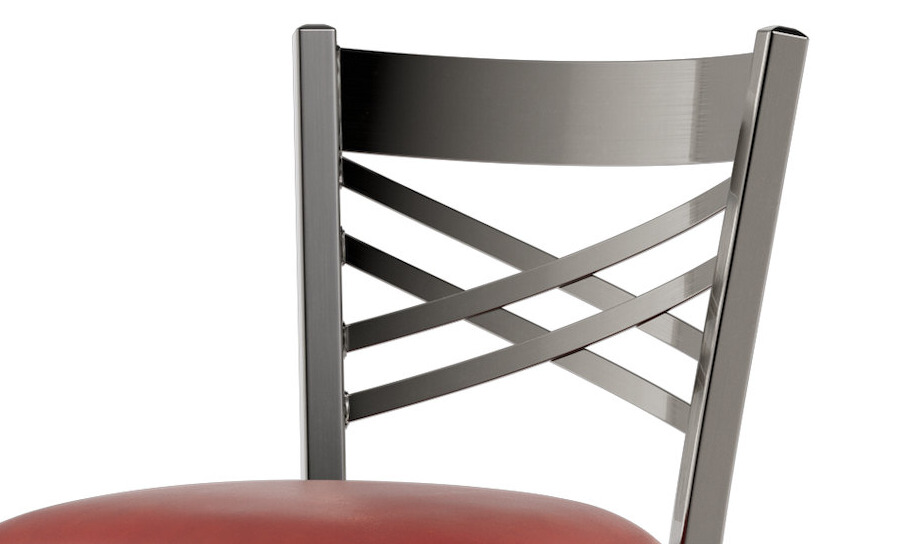 This bar stool's sleek padded seat combines with its contemporary cross back steel frame to instill a modern look in any location. Plus, since this bar stool's back is contoured for a customer's back, it will provide comfort while maintaining a distinct appearance.