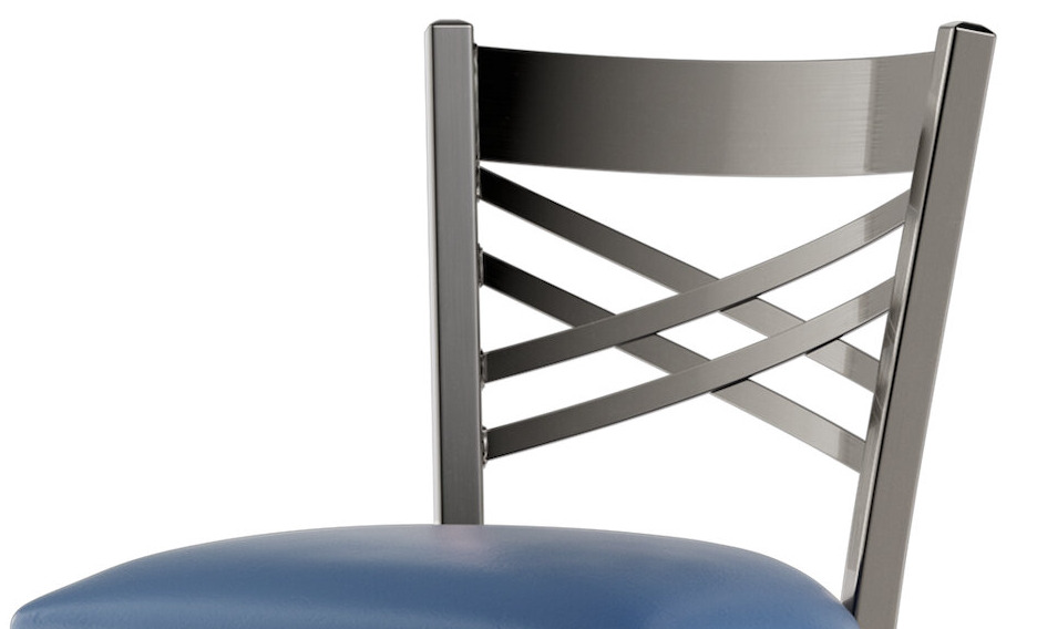 This bar stool's sleek padded seat combines with its contemporary cross back steel frame to instill a modern look in any location. Plus, since this bar stool's back is contoured for a customer's back, it will provide comfort while maintaining a distinct appearance.