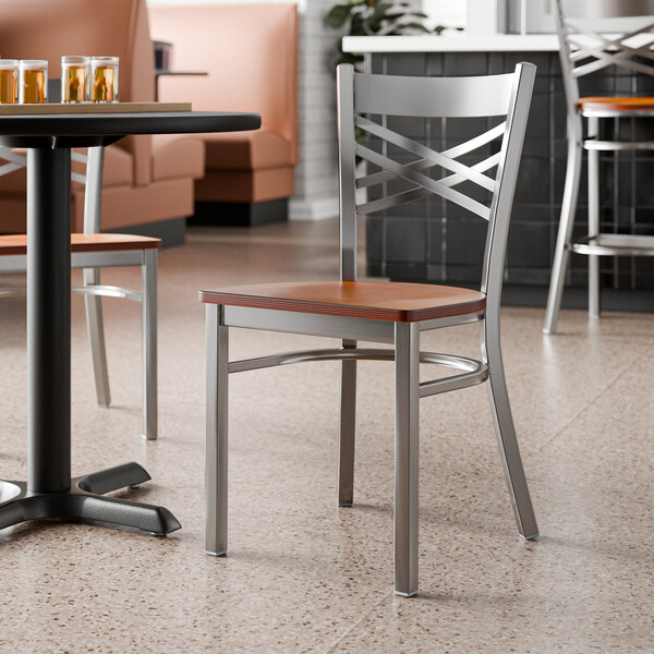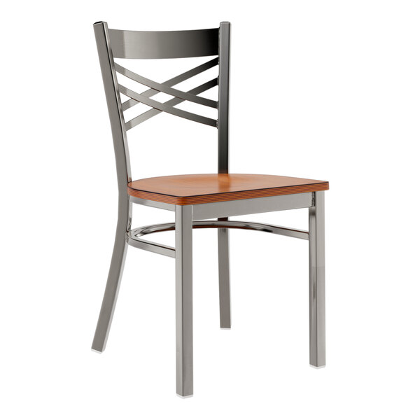 Lancaster Table & Seating Clear Coat Steel Cross Back Chair with Cherry Wood Seat these are very nice looking chairs I particularly love the design
