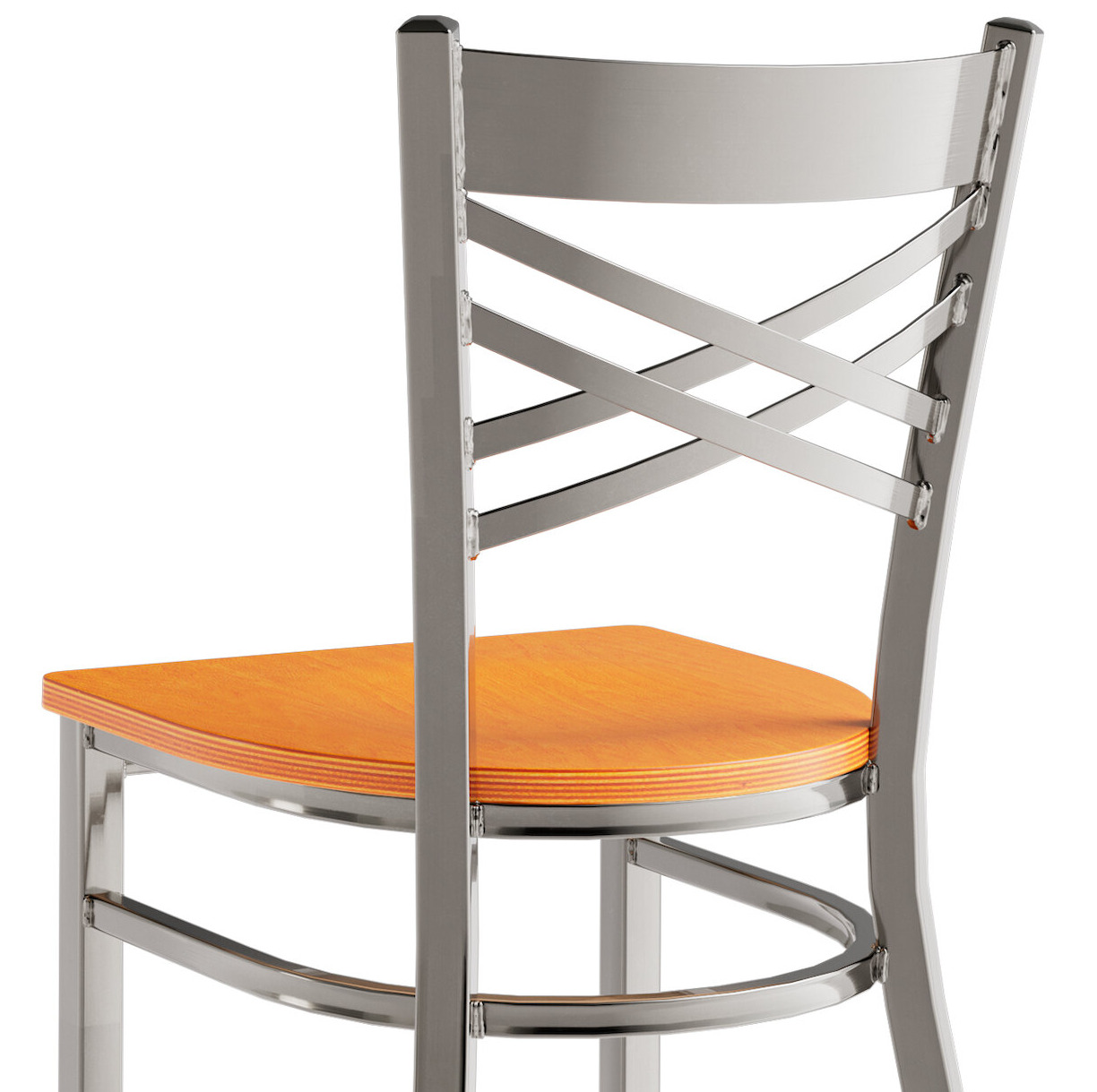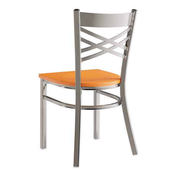 Lancaster Table & Seating Clear Coat Steel Cross Back Chair with Cherry Wood Seat these are very nice looking chairs I particularly love the design