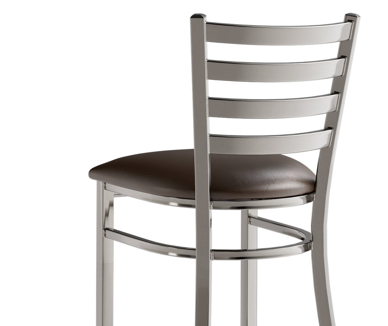 This bar stool's sleek padded seat combines with its contemporary ladder back steel frame to instill a modern look in any location. Plus, since this bar stool's back is contoured for a customer's back, it will provide comfort while maintaining a distinct appearance.