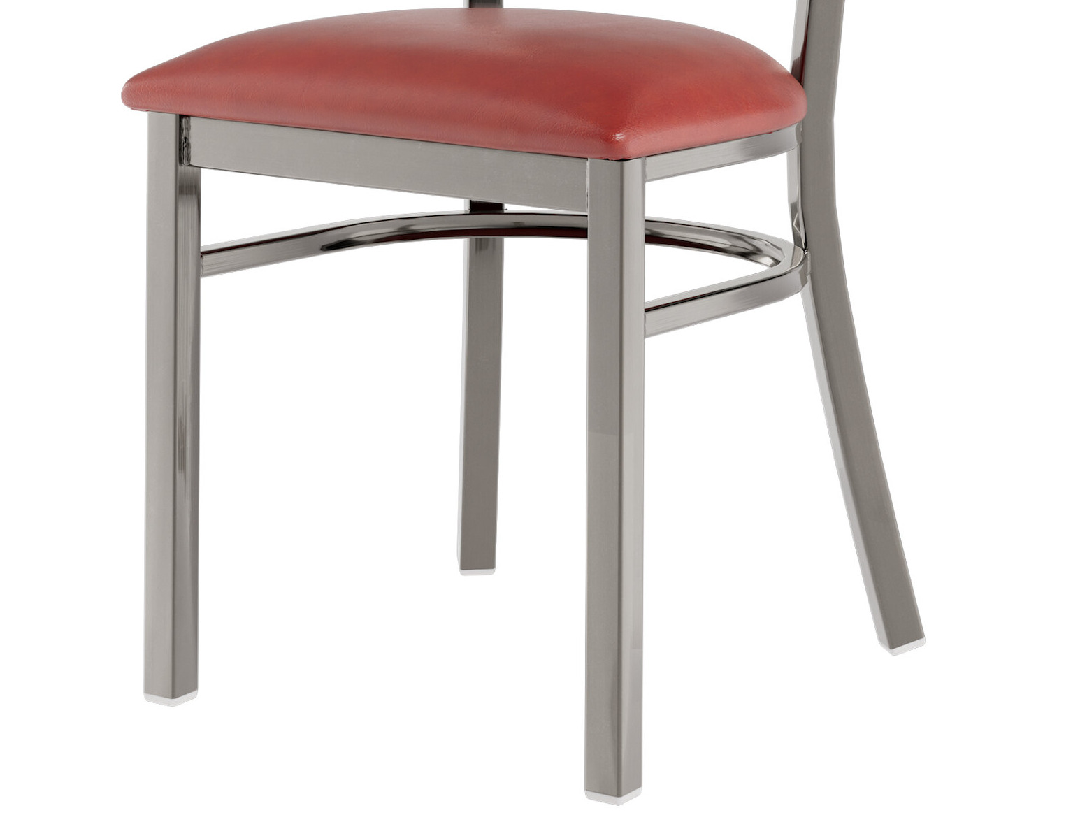 This chair's sleek padded seat combines with its contemporary ladder back steel frame to instill a modern look in any location. Plus, since this chair's back is contoured for a customer's back, it will provide comfort while maintaining a distinct appearance.
