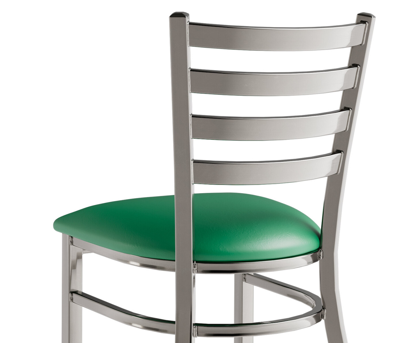 This chair's sleek padded seat combines with its contemporary ladder back steel frame to instill a modern look in any location. Plus, since this chair's back is contoured for a customer's back, it will provide comfort while maintaining a distinct appearance.