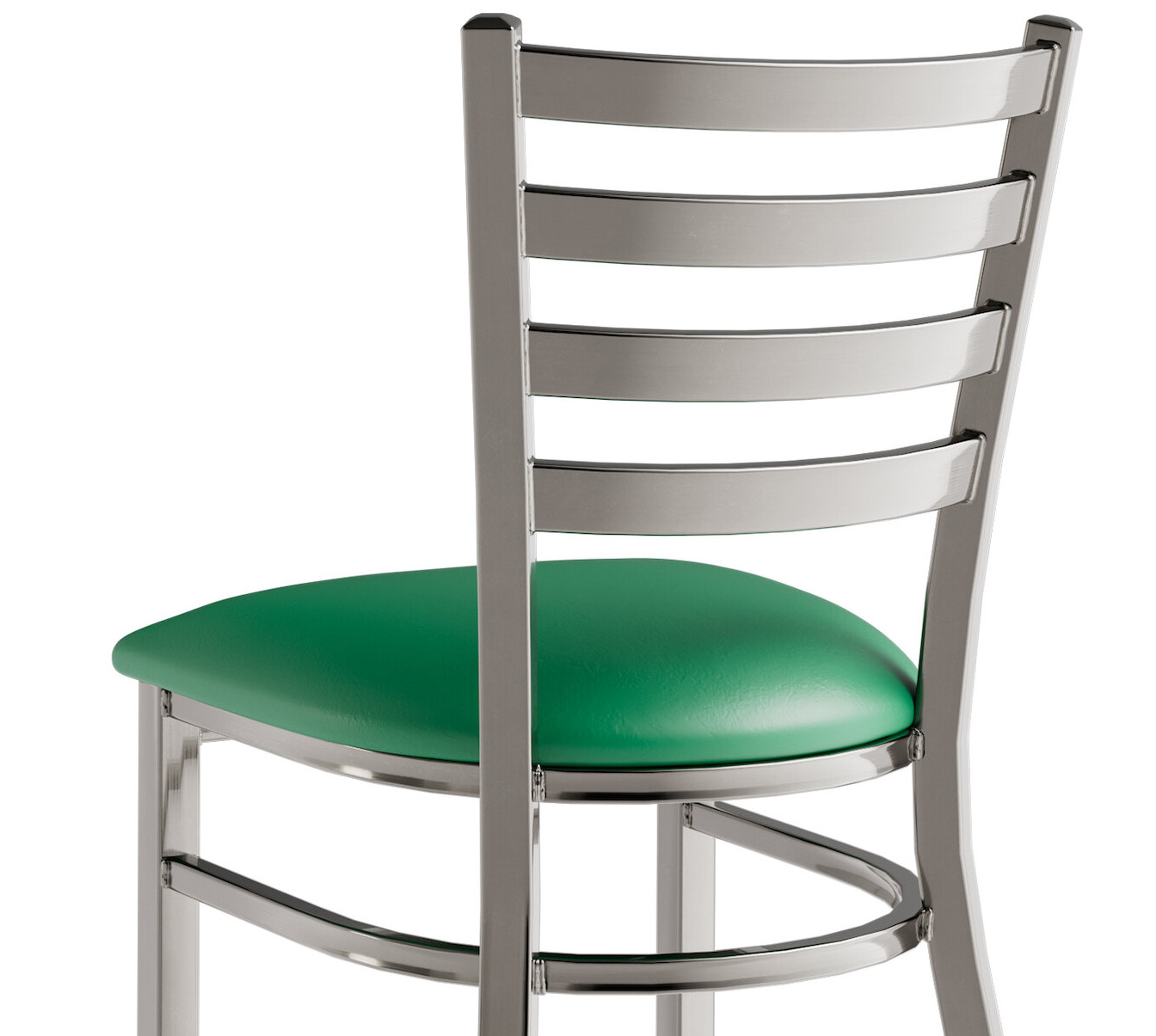 This chair's sleek padded seat combines with its contemporary ladder back steel frame to instill a modern look in any location. Plus, since this chair's back is contoured for a customer's back, it will provide comfort while maintaining a distinct appearance.