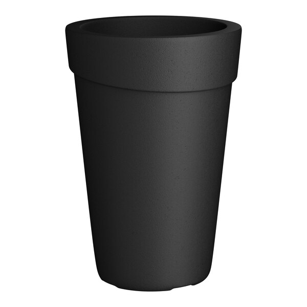 Its UV fade-resistant properties ensure that the black color will maintain its pristine appearance in outdoor settings, while the round shape with tapered sides and a wide rim provides a sleek, modern appearance.