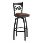 Seat your guests in comfort and style with this Lancaster Table & Seating black finish cross back swivel bar stool with 2 1/2" black vinyl padded seat.