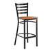 This bar stool's sturdy wood seat with a sleek cherry finish combines with its contemporary ladder back steel frame to instill a modern look in any location. Plus, since this bar stool's back is contoured for a customer's back, it will provide comfort while maintaining a distinct appearance.