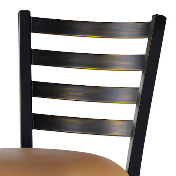This bar stool's sleek padded seat combines with its contemporary ladder back steel frame to instill a modern look in any location. Plus, since this bar stool's back is contoured for a customer's back, it will provide comfort while maintaining a distinct appearance.
