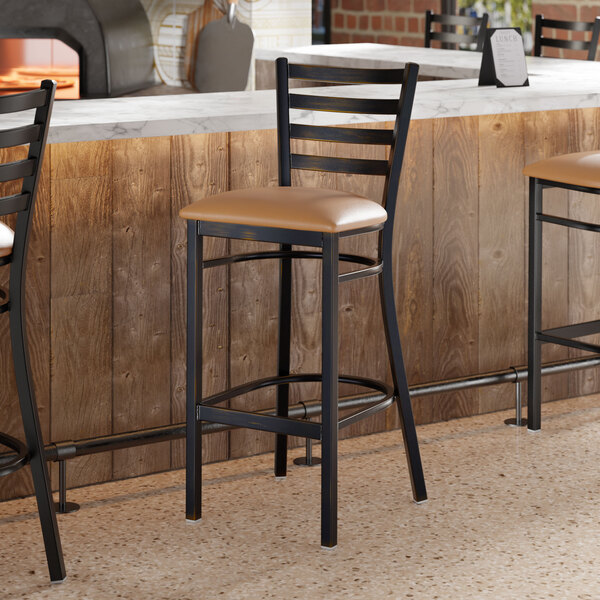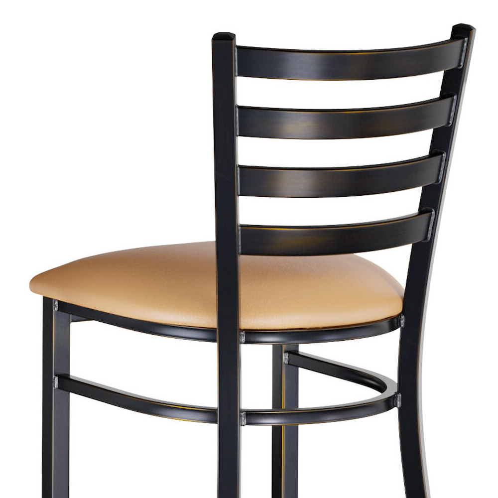 Seat your guests in comfort and style with this Lancaster Table & Seating distressed copper finish ladder back bar stool with 2 1/2" light brown vinyl padded seat.