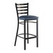 Lancaster Table & Seating Distressed Copper Finish Ladder Back Bar Stool with 2 1/2" Navy Blue Vinyl Padded Seat - Assembled