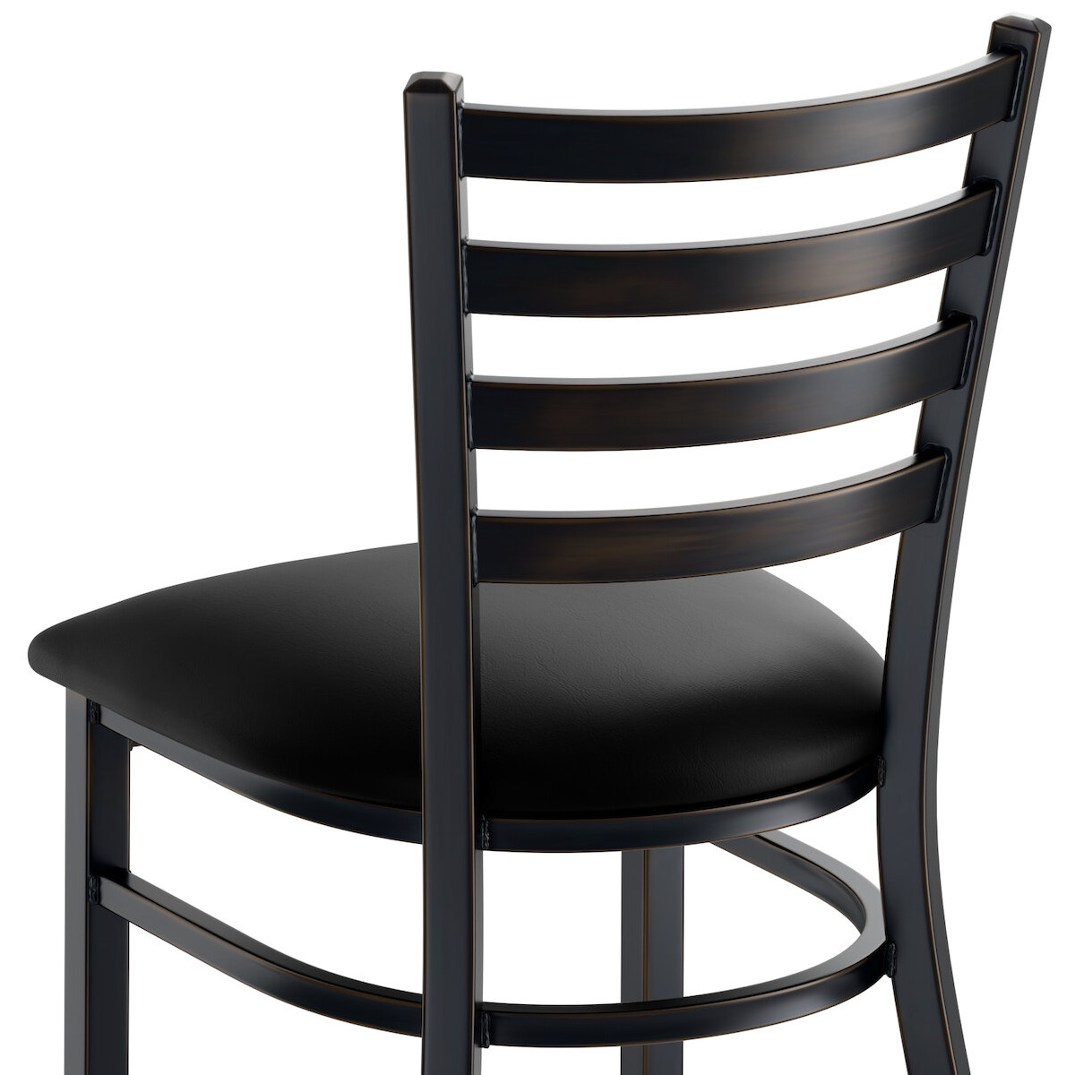 Seat your guests in comfort and style with this Lancaster Table & Seating distressed copper finish ladder back chair with 2 1/2" black vinyl padded seat.