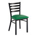 Seat your guests in comfort and style with this Lancaster Table & Seating distressed copper finish ladder back chair with 2 1/2" green vinyl padded seat.