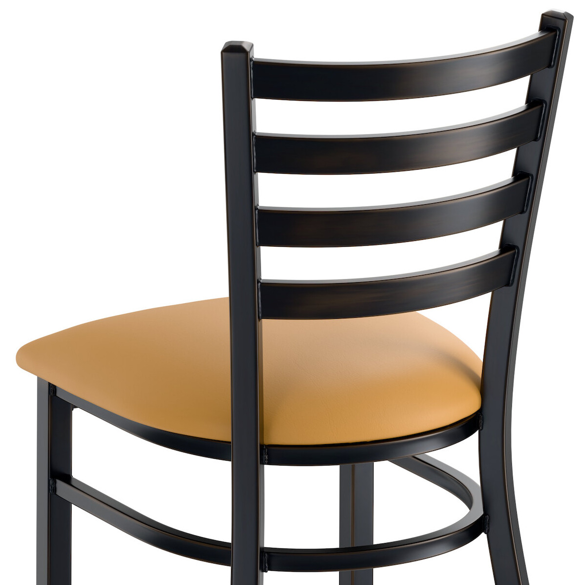 Seat your guests in comfort and style with this Lancaster Table & Seating distressed copper finish ladder back chair with 2 1/2" light brown vinyl padded seat.