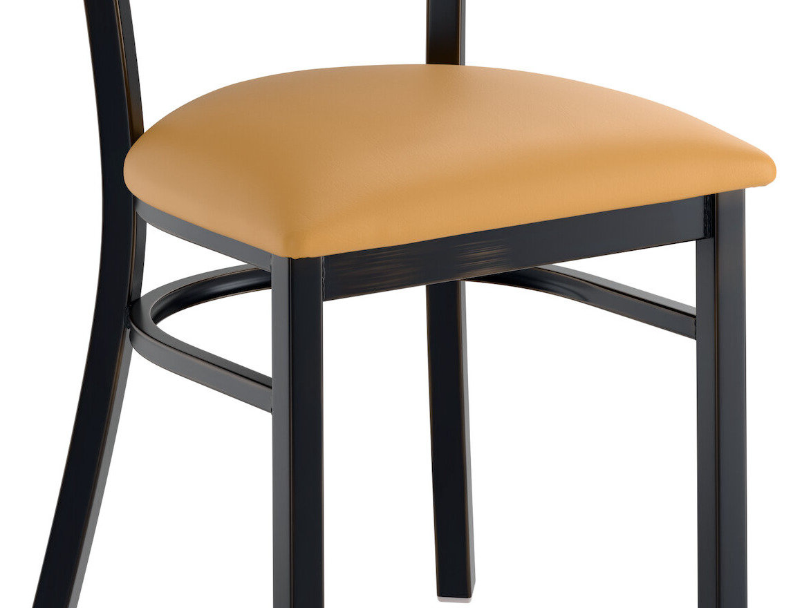 This chair's sleek padded seat combines with its contemporary ladder back steel frame to instill a modern look in any location. Plus, since this chair's back is contoured for a customer's back, it will provide comfort while maintaining a distinct appearance.